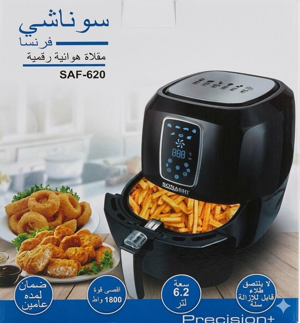 مقلاة هوائية رقمية سوناشي (SAF-620) – سعة 6.2 لتر